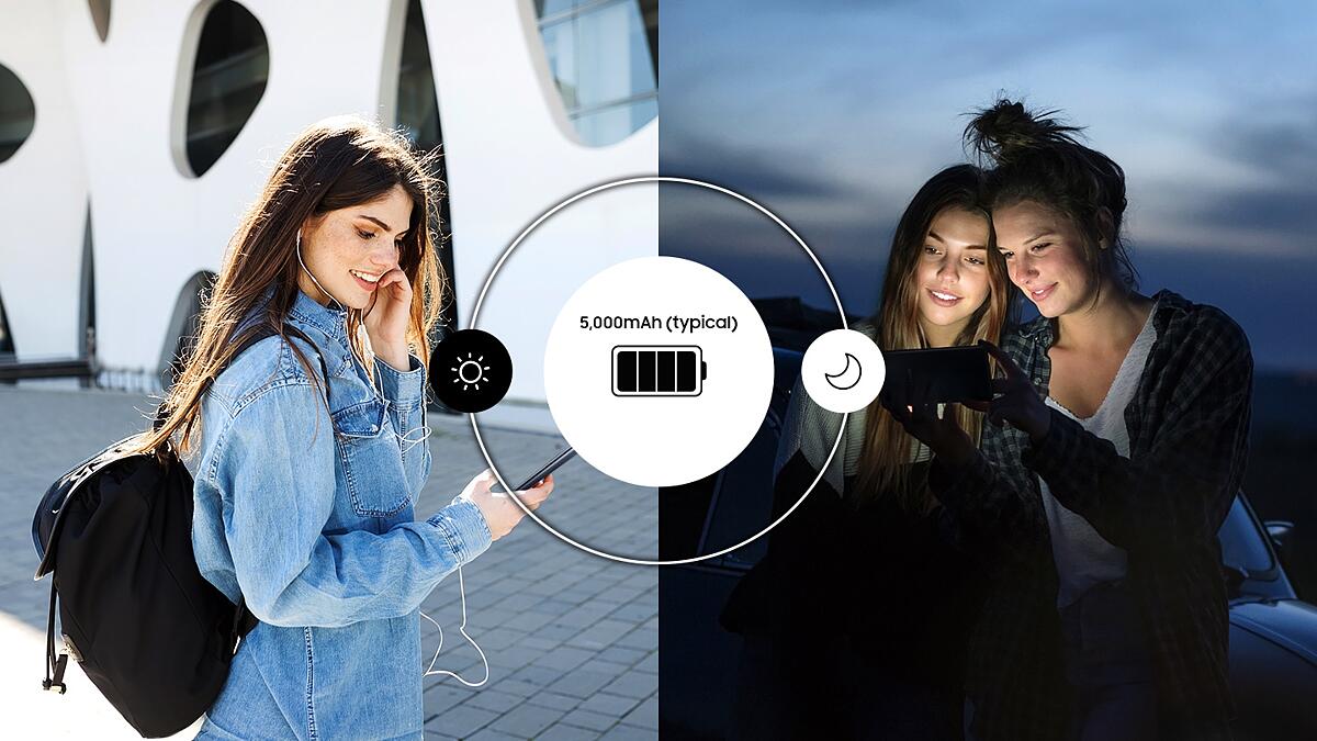طاقة لا تنتهي. يتميز Galaxy M20 ببطارية يُعتمد عليها تبلغ سعتها (النموذجية) 5000 ميللي أمبير في الساعة، كما أنها مدعومة بخاصية الشحن السريع، بحيث يمكنك الاستمتاع بساعات أطول في اللعب أو بث محتواك المفضل. ما عليك إلا الشحن مرة واحدة طوال اليوم، ثم الانطلاق كما تشاء.