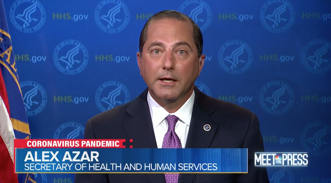 White House response: Deputy press secretary Judd Deere told Axios that "the White House has no personnel announcements at this time." | | | | | | | A message from Koch Industries | | Making a key ingredient for COVID-19 relief | | | | | | | At Flint Hills Resources in Longview, Texas, Koch employees have been working to produce polypropylene, a vital ingredient in COVID-19 test kits and IV bags. More on their remarkable effort. | | | | | | 4. 😷 Sunday highlight reel | | Health and Human Services Secretary Alex Azar offered urgent public health advice to address the recent COVID-19 outbreaks in an interview this morning with Chuck Todd on NBC's "Meet the Press." - "The window is closing," to slow the COVID-19 spread, Azar said.