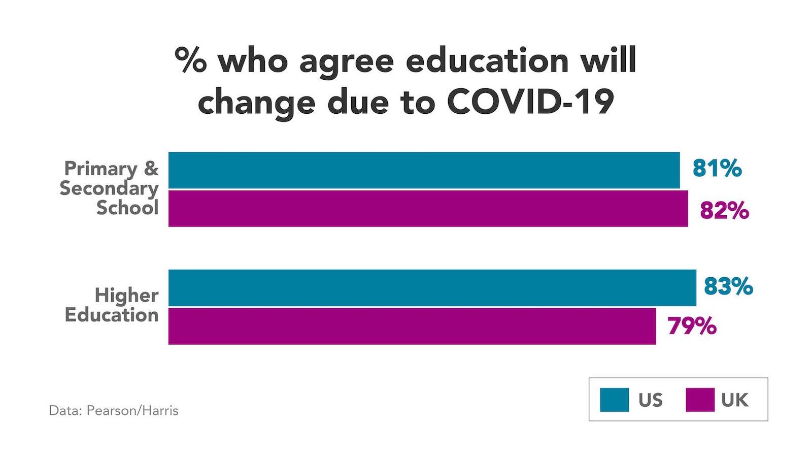 Yes, but: It's still not clear exactly how many of these devices "ultimately fit into a user's care continuum," notes Erin Brodwin in STAT News. The bottom line: I still bought one. | | | | A message from Pearson | Education is forever changed | | | | From the U.S. and beyond, most people believe COVID-19 will reshape education for years to come. Key numbers: - 81% in the U.S. and 82% in the U.K. say primary and secondary education will change.